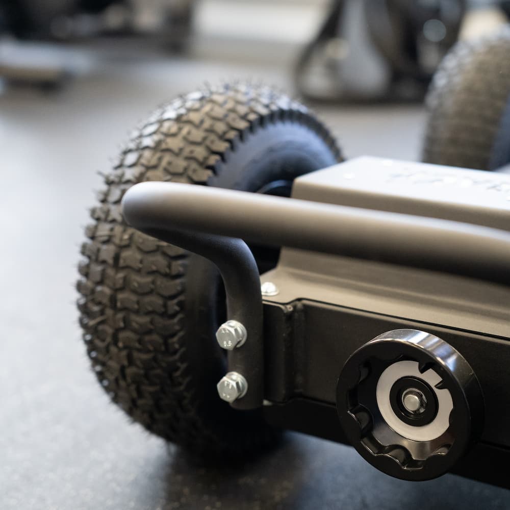 Son système unique de résistance mécanique placée sur les deux roues avant permet un travail fluide et progressif, sans dépendre de la friction au sol. Cette technologie garantit une résistance constante sur tous types de surfaces, que vous l’utilisiez en intérieur ou en extérieur. Vous pourrez, à l’aide d’une molette, régler la résistance du freinage. Sa tige de stockage de poids permettra de le lester afin qu’il reste en place et ne se soulève pas lors des mouvements de poussés.