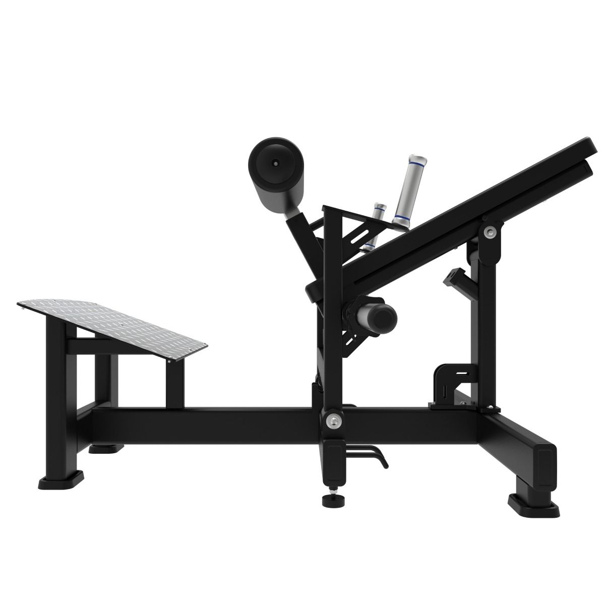 L’un des grands atouts de ce modèle est sa plateforme surélevée et généreusement dimensionnée, offrant de multiples possibilités de placement des pieds. Position étroite, large ou à différentes hauteurs : tout est possible pour cibler différemment les muscles et optimiser le recrutement des fibres. Cette plateforme permet également une amplitude de mouvement supérieure à celle d’un hip thrust classique avec barre, favorisant une activation plus importante des fessiers et donc de meilleurs résultats.