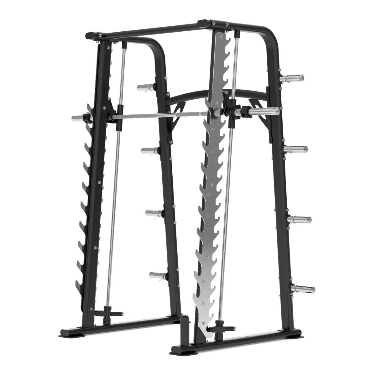 - Réglages de hauteur : Assurez-vous que la smith machine offre des réglages de hauteur suffisants pour vous permettre d'ajuster la position de la barre en fonction de votre taille et de vos exercices préférés.