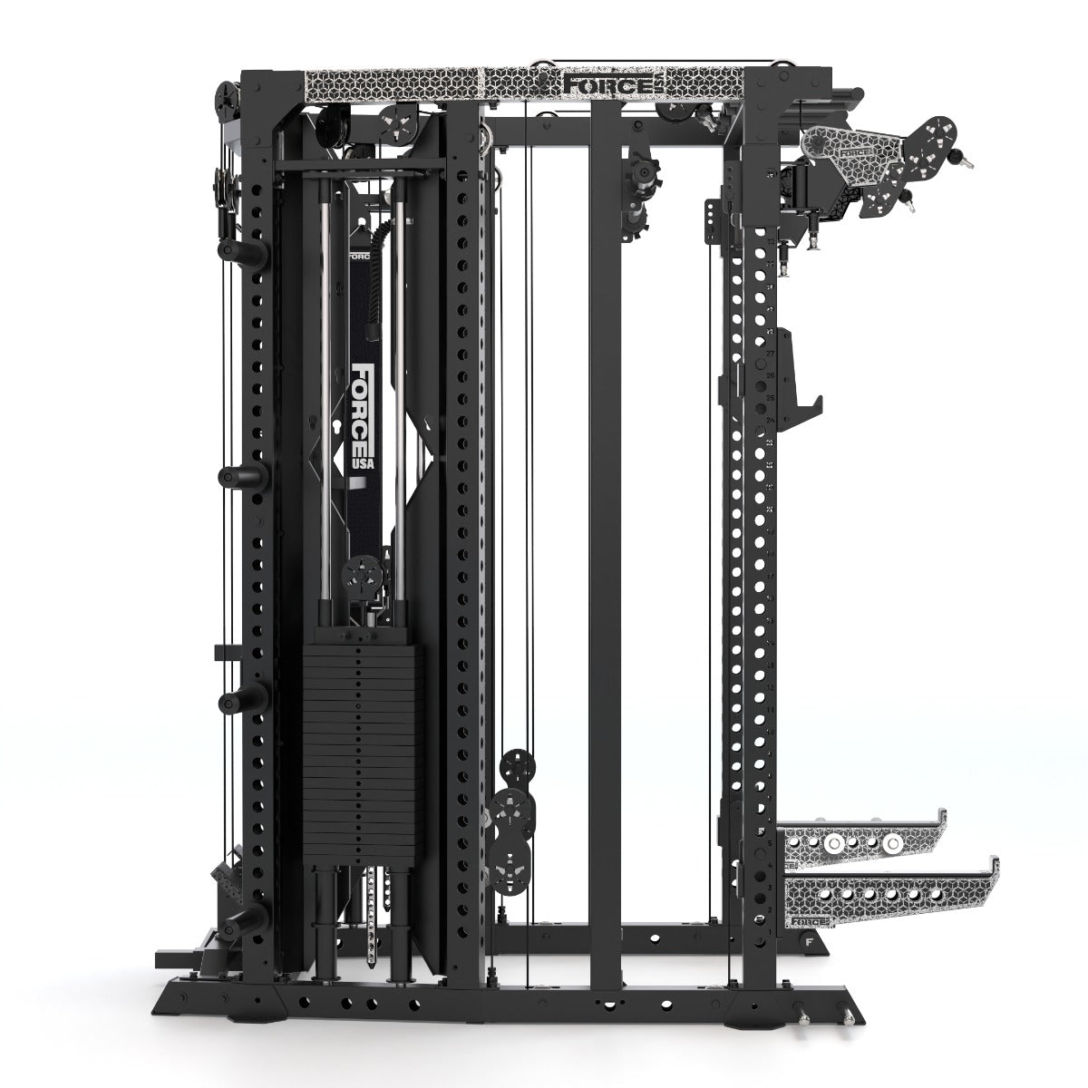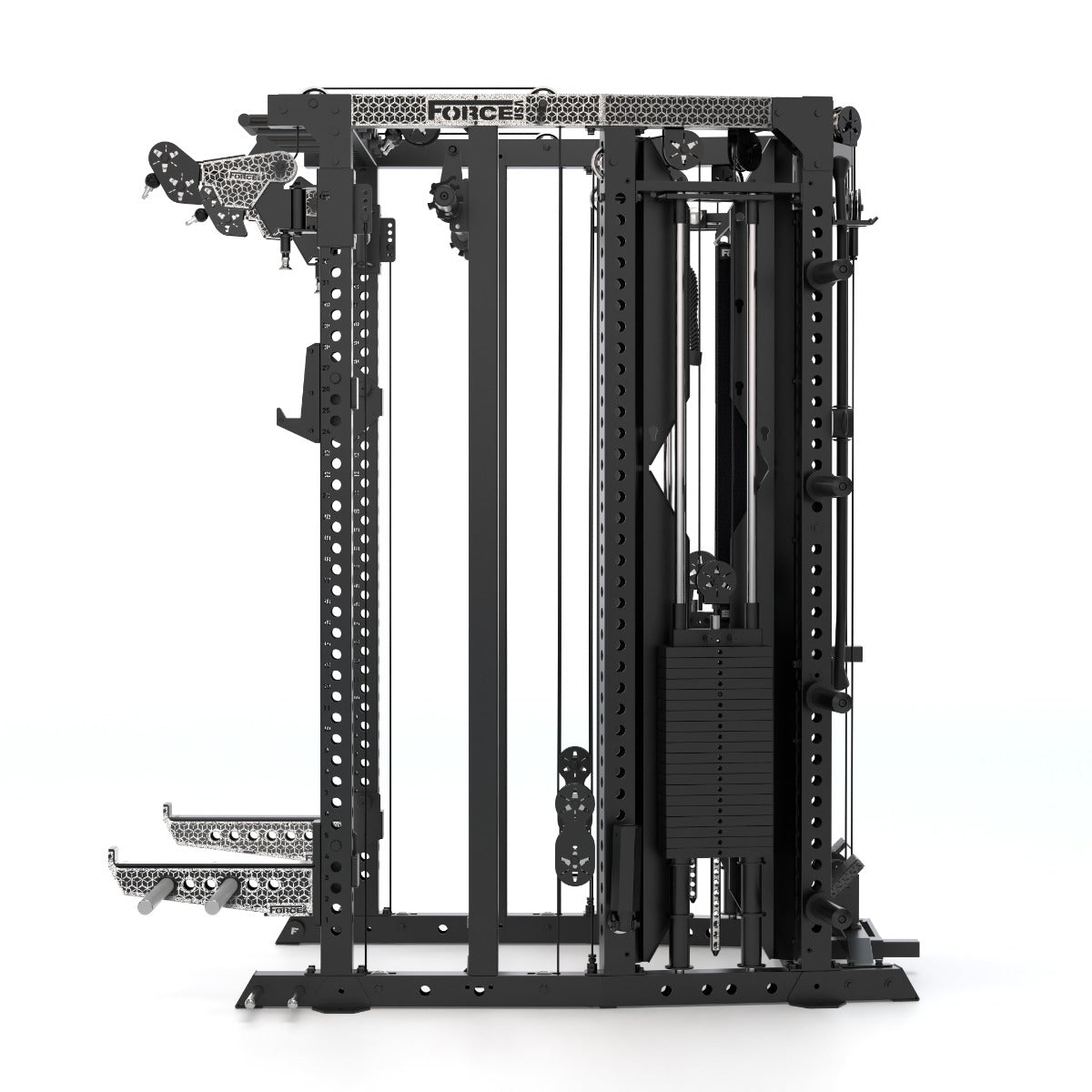 Force USA® a construit le tout premier All‑In‑One Trainer. Puis, elle a créé le premier avec un système de câble central. Aujourd’hui, elle change encore une fois les règles du jeu. Voici le Force USA C20, le premier modèle au monde avec câble central, montants de 75 × 75 × 3 mm et trous de 25 mm, en plus de colonnes de poids extensibles.Force USA a poussé le concept encore plus loin.Les bras de poulie «freestyle» se déplacent vers le haut, le bas, l’intérieur et l’extérieur, avec un ratio fluide de 2:1 sur des rails verticaux.Les doubles colonnes de poids de 90,7 kg (extensibles jusqu’à 136 kg) alimentent le système de câble central, combiné à des poulies hautes (ratios 1:1 / 2:1) et basses (1:2 / 1:1), idéales pour les tirages et rameurs à 90°.L’ensemble du système est équipé de poulies en aluminium poli pour un mouvement fluide et une esthétique professionnelle.Et voici le véritable tournant: le Sliding Bench (banc coulissant) breveté par Force USA, qui se connecte directement aux poulies inférieures et permet de travailler avec jusqu’à 272 kg de résistance par câble en presse à jambes, hack squats, et bien plus. Le C20 est conçu pour optimiser chaque centimètre. Il ne fait pas que s’adapter à l’espace : il le transforme. Voici le C20 — une machine conçue par ceux qui s’entraînent, pour ceux qui s’entraînent.