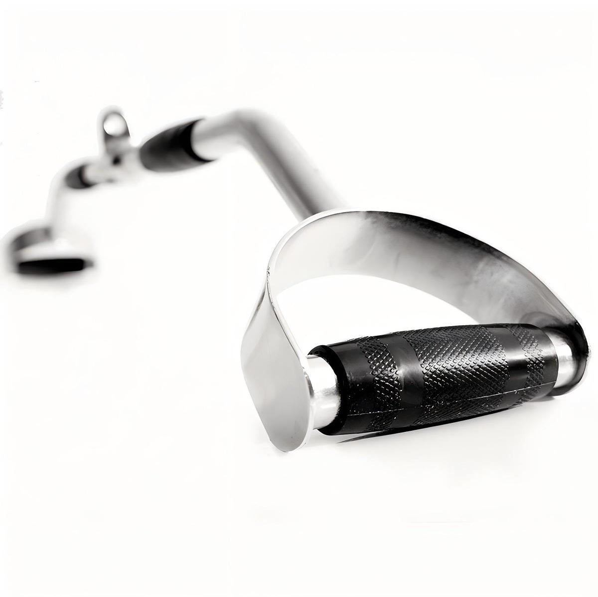 Idéal pour un entraînement du dos sûr et efficace, cet accessoire permet de réaliser des tirages avec prise neutre ainsi que des rameurs avec poulie basse, maximisant l'activation des dorsaux tout en réduisant le stress sur les articulations. Son angle conçu scientifiquement permet un étirement plus profond, favorisant le développement musculaire du dos. De plus, son design inclut deux poignées supplémentaires au centre, en caoutchouc moleté, qui augmentent sa polyvalence en permettant des exercices spécifiques pour les biceps et triceps.