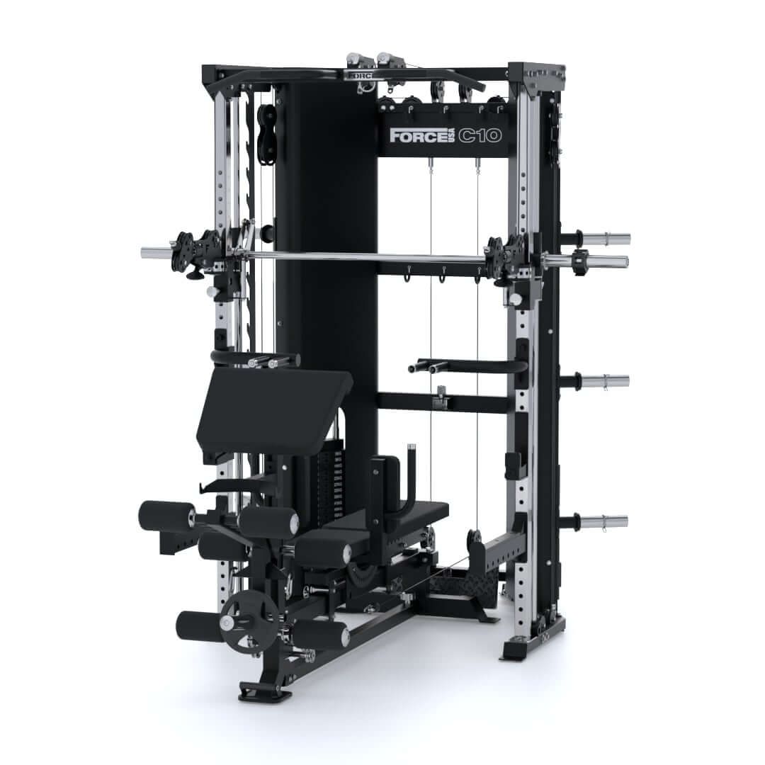 Extras inclus : plaque de presse à jambes, accessoire curl/extension de jambes, curl preacher